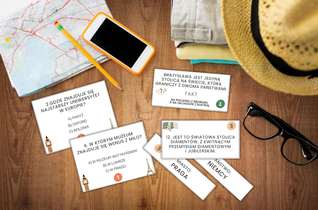 Każda podróż to niesamowita okazja do odkrywania nowych miejsc, historii i fascynujących ciekawostek. A co, jeśli moglibyście nie tylko zwiedzać, ale także świetnie się razem bawić? Wyjazdowe Love to gra stworzona z myślą o parach, które uwielbiają wspólne wyjazdy, tripy po Europie i chcą sprawdzić jak wiele z tych wycieczek pamiętają. Możecie w nią grać zarówno w podróży, jak i w domu – jeśli uwielbiacie odkrywać europejskie miasta i macie już sporą wiedzę na ich temat! To gra dla prawdziwych fanów podróży. Poziom trudności: Zaawansowany :)